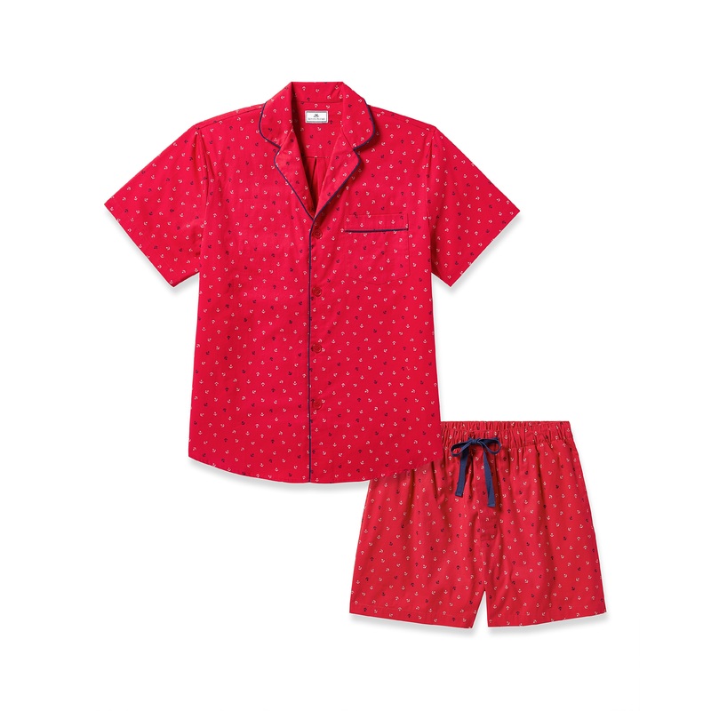 Petite Plume wishes you a bonne nuit, and in their luxury sleepwear, its hard not to oblige. The Men’s Twill Short Sleeve Short Set Anchors Away adds an extra-summery touch to classic red pajamas. Ideal for backyard barbecues and breezy boat rides. This set is accented with contrast piping and finished with buttons. The fabric is made from 100% of the finest quality cotton. It is yarn-dyed to prevent fade and brushed for added softness making the sleepwear feel absolutely luxurious, getting cozier after each wash.